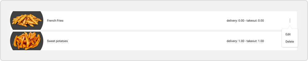 Choice products are additional products or ingredients with which a product must be ordered. It can be a side dish (salad, fries, etc.), a type of cooking (rare, well done, etc.), a flavor (apples, oranges, etc.), a brand (Pepsi, Crush, 7Up, etc.), etc.