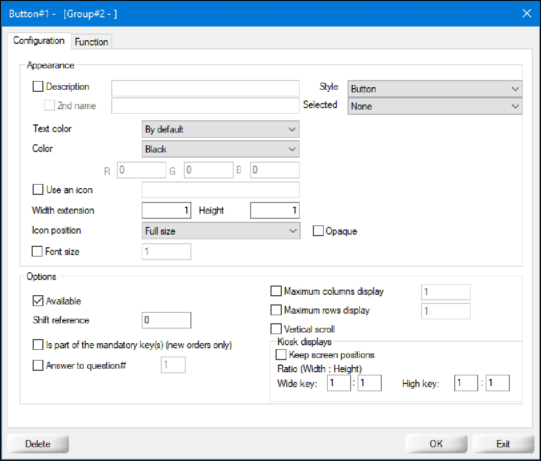 Une fois la configuration du groupe terminée, cliquez sur un bouton de la grille pour faire apparaître ses options de configuration :&#x20;